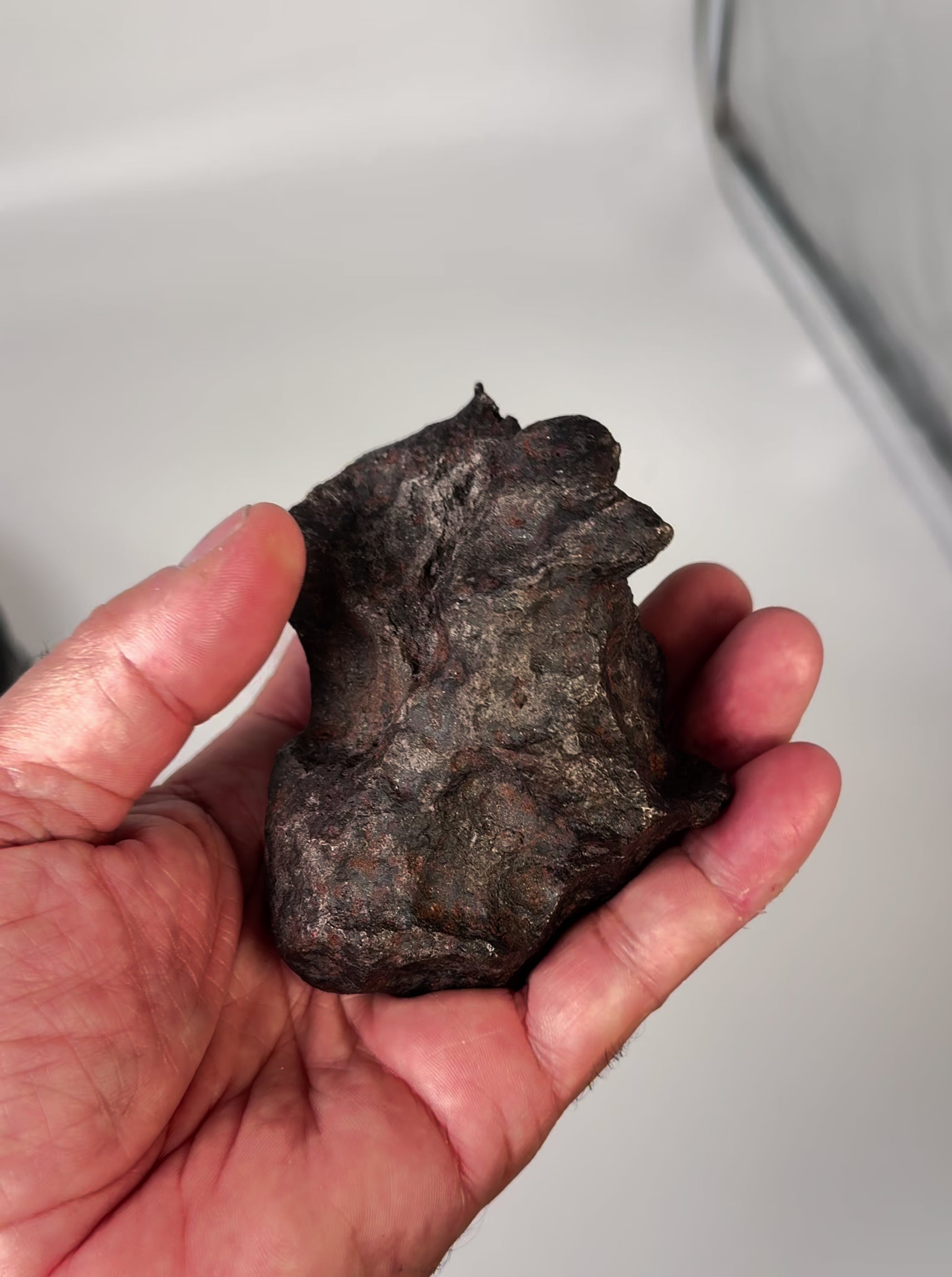 This exceptional Campo del Cielo meteorite stands out with its remarkable quality and beautifully defined thumbprinting. Featuring a unique, sculptural form and a natural hole—an uncommon and fascinating feature—it offers far more character than a typical Campo piece and displays stunningly from every angle.